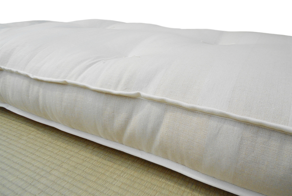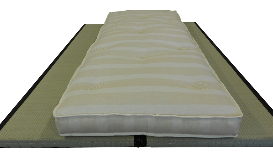 Futon formato da 5 strati di cotone 100% naturale. Altezza 14 cm. Rivestimento in cotone 100% colore naturale. Cerniera d'ispezione. Indicato per l'uso come materasso. Il tatami e i cuscini non sono compresi nel prezzo.