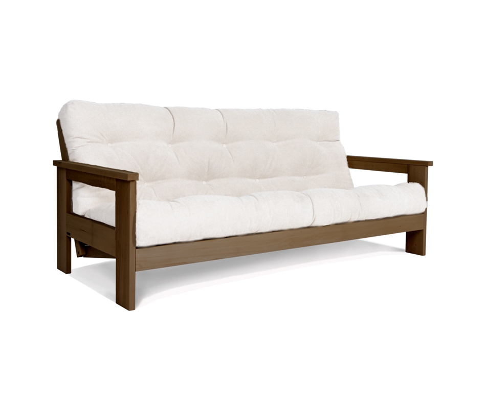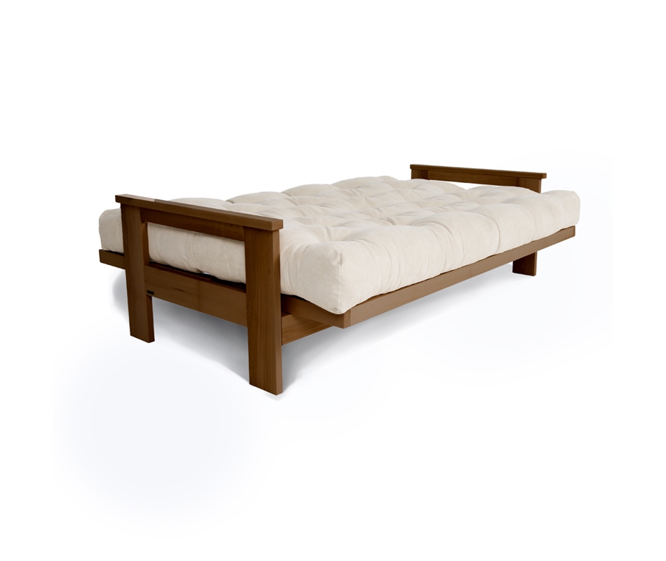 Il divano letto viene fornito di serie nella colorazione naturale o noce, realizzate con olio di lino, oppure non trattato.