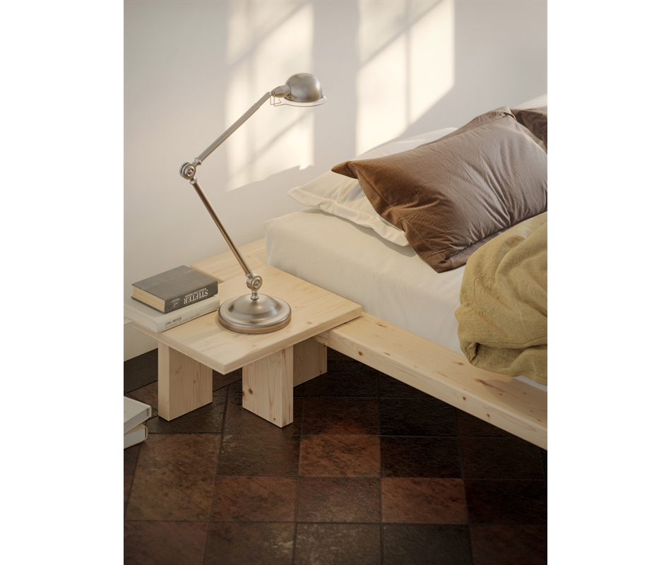 Letto a doghe disponibile in versione matrimoniale (160x200cm), king size (180x200cm) e alla francese (140x200cm), realizzato in pino scandinavo massiccio.