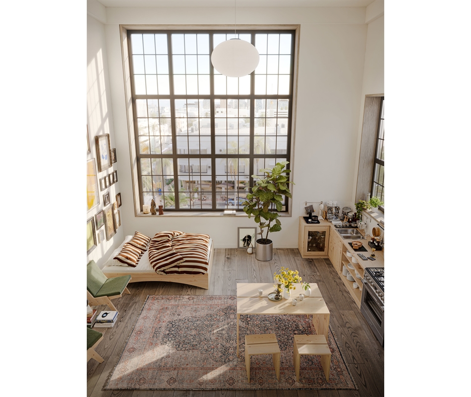 Il letto Orbit è disponibile in varie dimensioni, da cm 140x200 a cm 180x200, realizzato in pino scandinavo massiccio